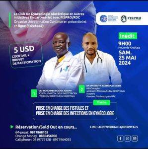 Dans le cadre de la célébration de la Journée Internationale pour l’Elimination de la Fistule Obstétricale (JIEFO), célébrée chaque 23 mai, FisPro DRC en collaboration avec le Club de Gynécologie obstétrique et Autres initiatives organise une formation sur la prise en charge des fistules obstétricales et des infections en gynécologie. Elle se déroulera en présentiel et en ligne le 25 mai 2024 à l’Hôpital HJ de Kinshasa.